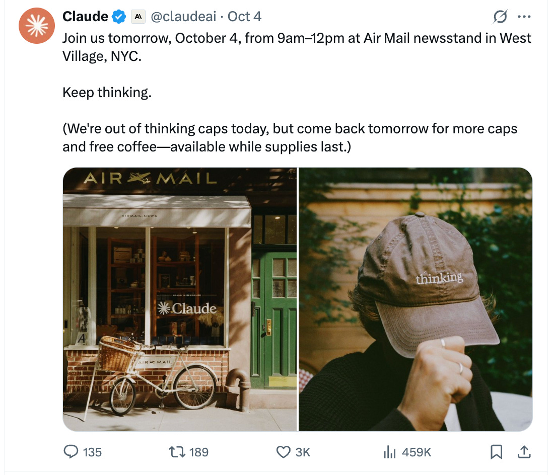 Anthropic’s Thinking campaign is inspired. Given their branding is oddly similar to Airtree’s, I feel very connected to the brand: