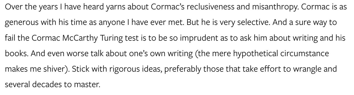 A gorgeous portrait of Cormac McCarthy by SFI President David Krakauer (full article linked):