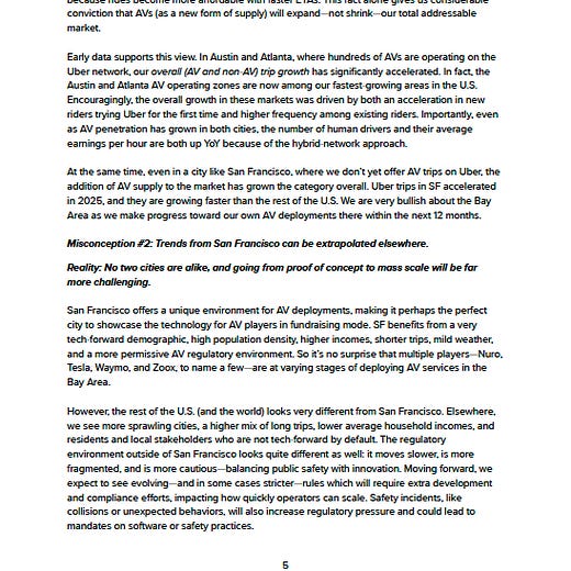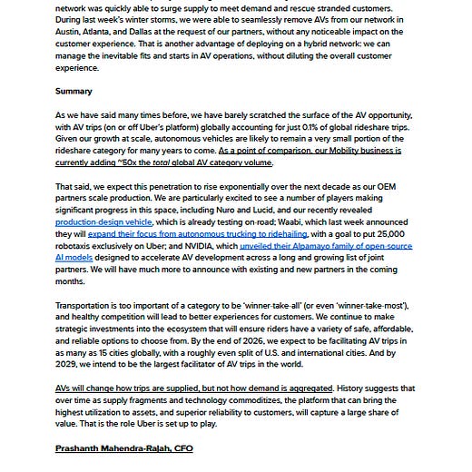 There’s some good commentary on X after Dara’s comments on Uber’s strategy as autonomous vehicles come to market: