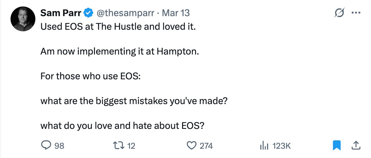 I see a lot written about EOS in real-world businesses but don’t know many startup founders using it. What’s the most effective operating model for an early-stage startup?