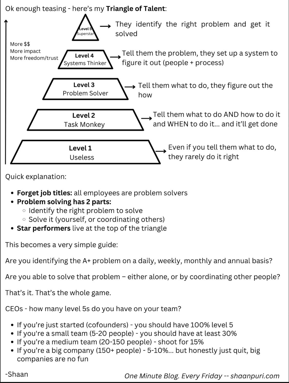 the triangle of talent from Shaan Puri: